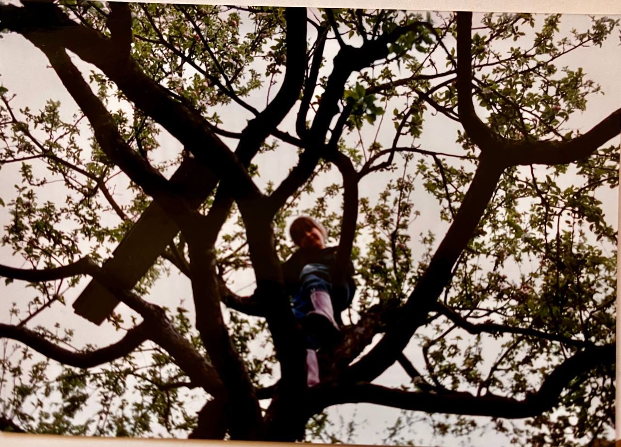 Yesterday i found this old picture of mine from when i was 5/6 years old, sitting in my favorite apple tree companion, aka the spaceship of my childhood (i have written about them HERE). On the back of the photo i can read (in a way older handwriting of mine):